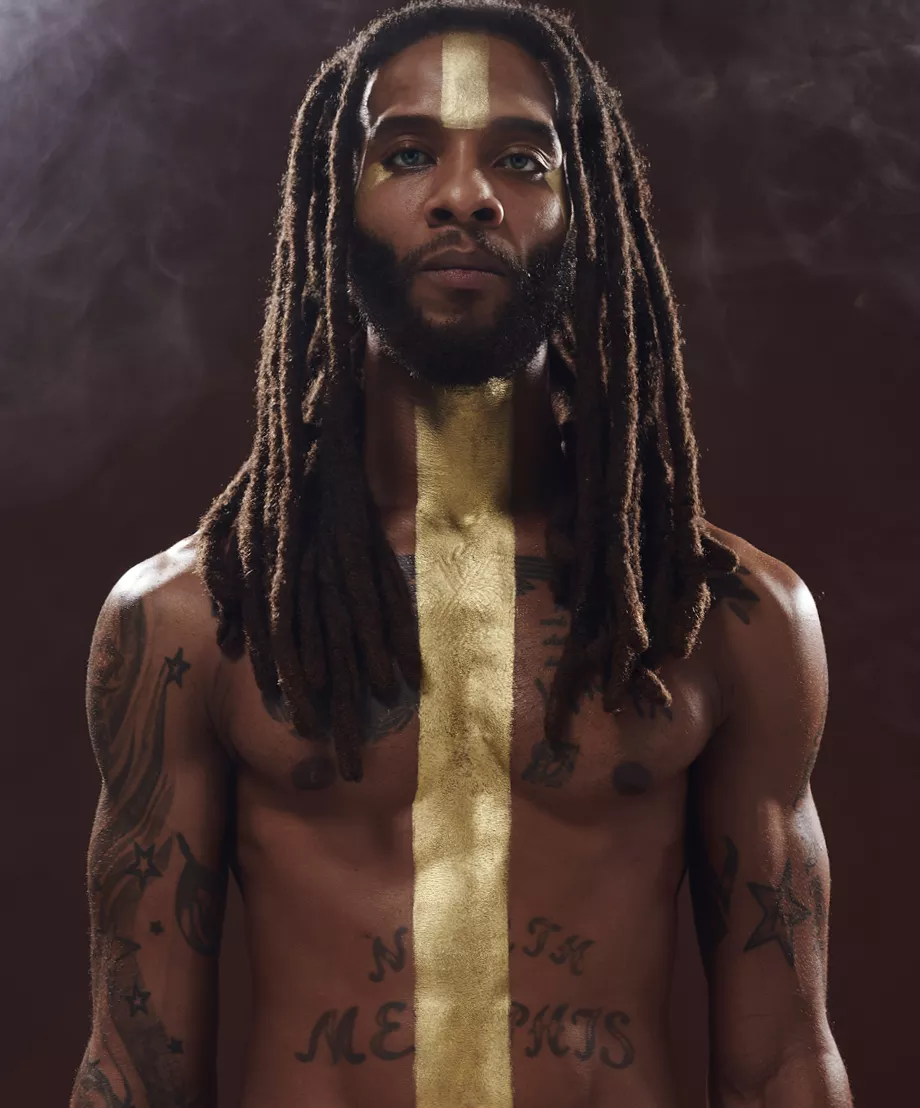Per questa sesta edizione abbiamo letteralmente coperto d’oro i nostri atleti, valorizzando i loro fisici scultorei. Ogni corpo diventa così una vera opera d’arte, con l’oro che rimanda ai successi sportivi, ai premi e all’energia del gesto atletico.